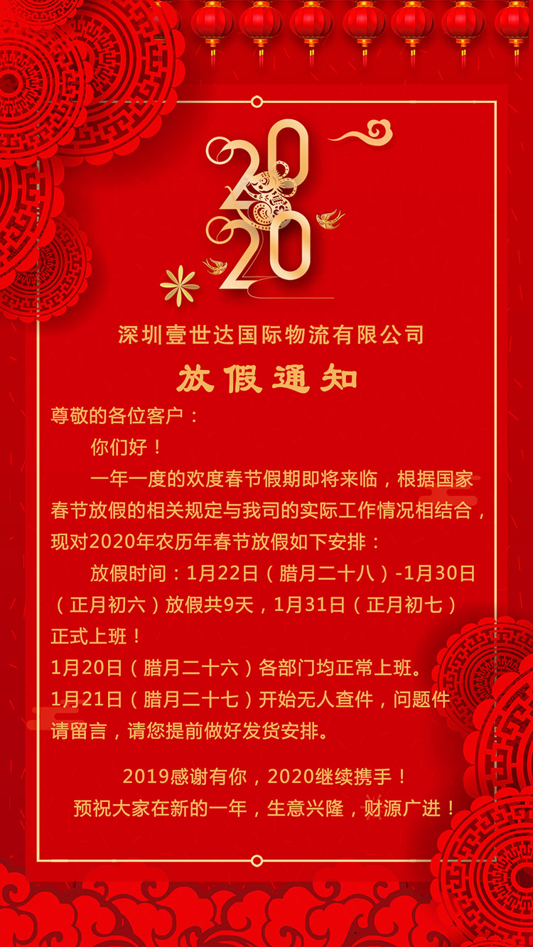 壹世達(dá)國(guó)際物流有限公司春假放假通知