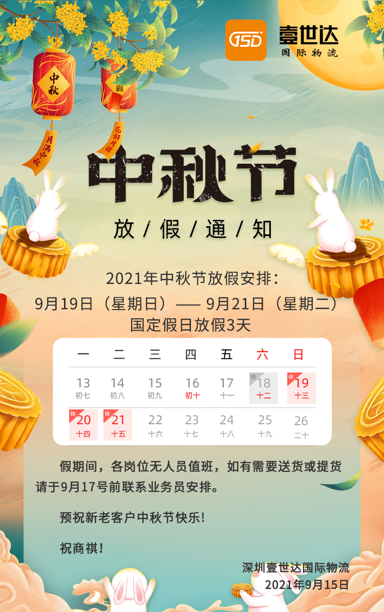 2021年中秋節(jié)放假通知