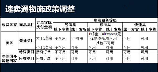 而對于除美國外的其他國家,將允許使用標準類、快速類物流服務及線上經(jīng)濟類物流服務,線下經(jīng)濟類物流服務(無追蹤平郵)將不被允許。