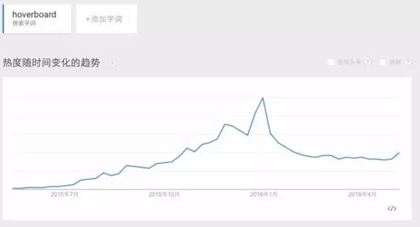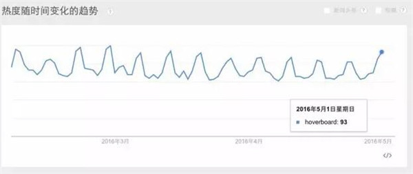在平衡車下架的這半年時間里,其需求并未受到影響,據(jù)扭扭車/平衡車(hoverboard)這個詞2015年在谷歌上的購物搜索數(shù)據(jù)統(tǒng)計。