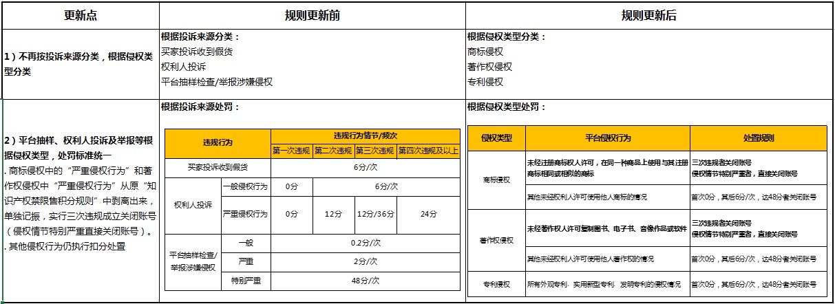 基于這樣的背景,平臺(tái)將更新知識(shí)產(chǎn)權(quán)規(guī)則,以下為平臺(tái) 知識(shí)產(chǎn)權(quán)變化前與變化后對(duì)比。