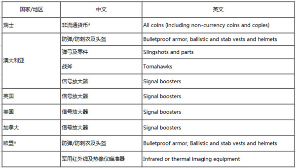 2. 所有其他非流通貨幣(無論何時(shí)發(fā)行,真品或仿幣,是否含有貴金屬成分)均屬于瑞士地區(qū)禁售商品。