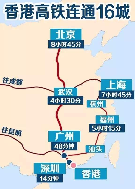 9月23日,香港高鐵正式與國內(nèi)2.5萬公里的國家高鐵線路接通,從此香港進一步融入中國的世界級經(jīng)濟市場,共享國家發(fā)展紅利。