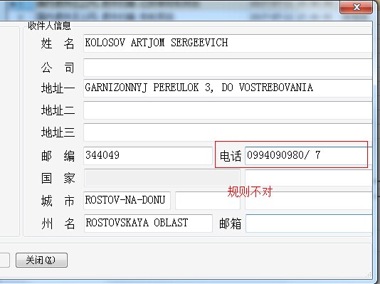 最近很多發(fā)CDEK俄羅斯專線的客服都有遇到過,同樣的收件電話,如發(fā)中郵小包或E郵寶等渠道不會出現(xiàn)錯誤,但是發(fā)CDEK俄羅斯專線一直說電話不正確,要求提供正確的...[查看詳細(xì)]